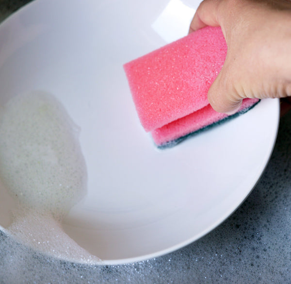 Mit dem passenden fettlösenden Spülmittel und einem Küchenschwamm oder Schwammtuch gelingt die Reinigung bestimmt.