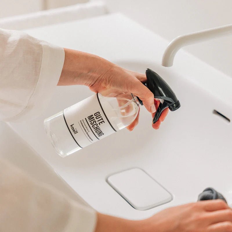 Der hochwertige Sprühkopf sorgt für eine gleichmäßige Vernebelung und liegt dabei angenehm in der Hand. Die Mischung wird fein verteilt – für eine gründliche, sparsame Reinigung verschiedenster Oberflächen. Ob Glas, Keramik, Edelstahl oder Kunststoff: Die Sprühflasche bringt dein Reinigungsmittel punktgenau dorthin, wo es gebraucht wird.