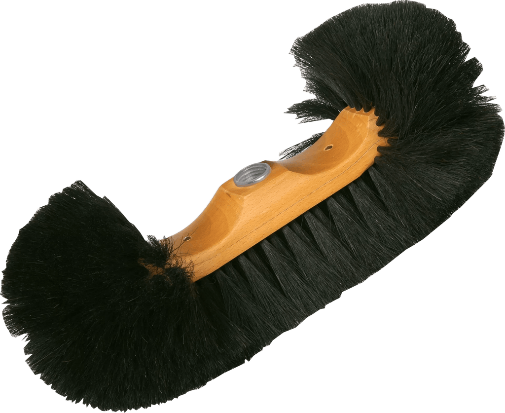 Der ca. 40 cm breite Bürstenkopf ist mit dichtem, dunklem Rosshaar bestückt. Dieses Naturmaterial ist besonders elastisch, langlebig und antistatisch. Es nimmt Staub und Spinnenweben zuverlässig auf, ohne sie aufzuwirbeln – ideal für Innenräume, Altbauten, Treppenhäuser oder Dachschrägen.